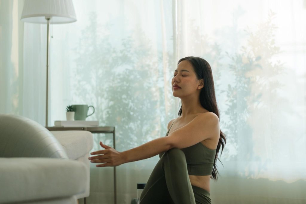 心を落ち着かせる音に合わせてと呼吸や動きをつけるのが特徴のレッスンです。