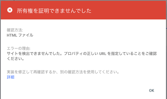 証明できませんでしたと表示された場合は、アップロードした場所が誤っているので、もう一度確認して、ファイルをアップロードし直します。