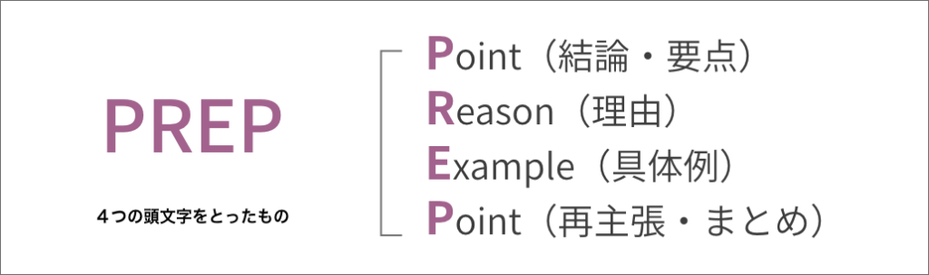 PREP法とは、以下の順で文章を構成する手法です。