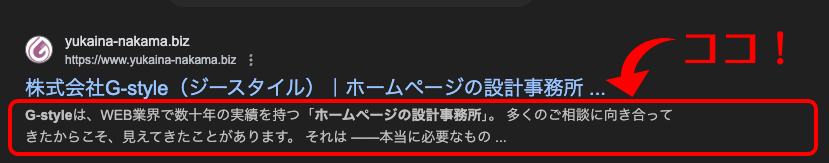 | 検索結果 | 本文の途中文が自動表示 | 魅力的な説明文を表示 |