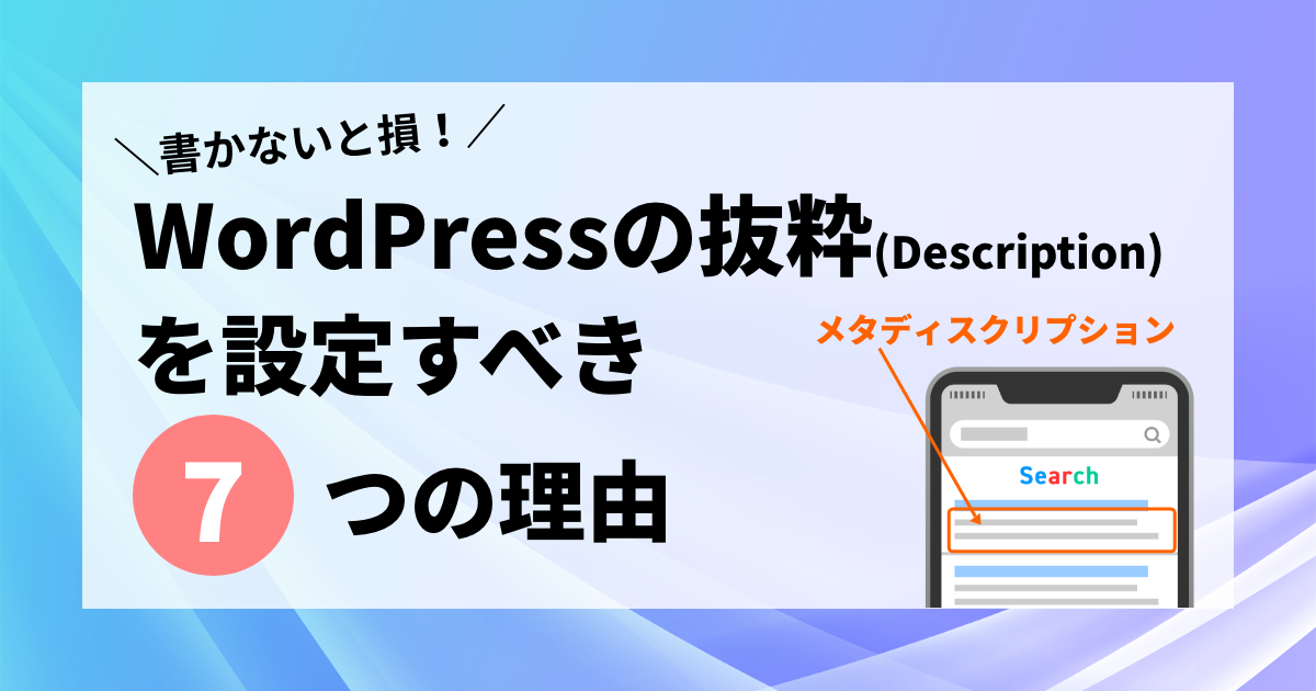 WordPressでブログを運営していると、「抜粋(Description)」という項目を目にしたことがある方も多いでしょう。